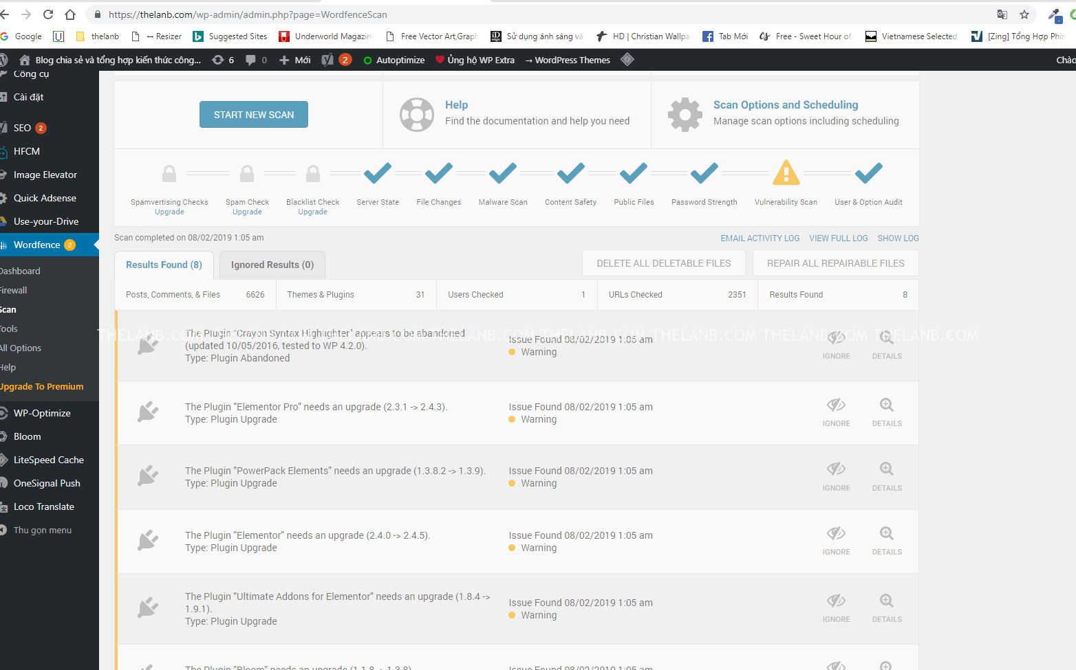 Quét lại website: đây là bước cuối để chắc chắn website không còn bị kèm mã độc, mình thường sử dụng Wordfence để quét